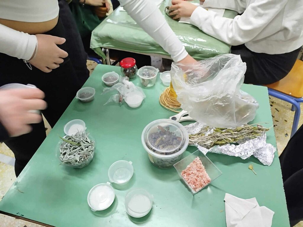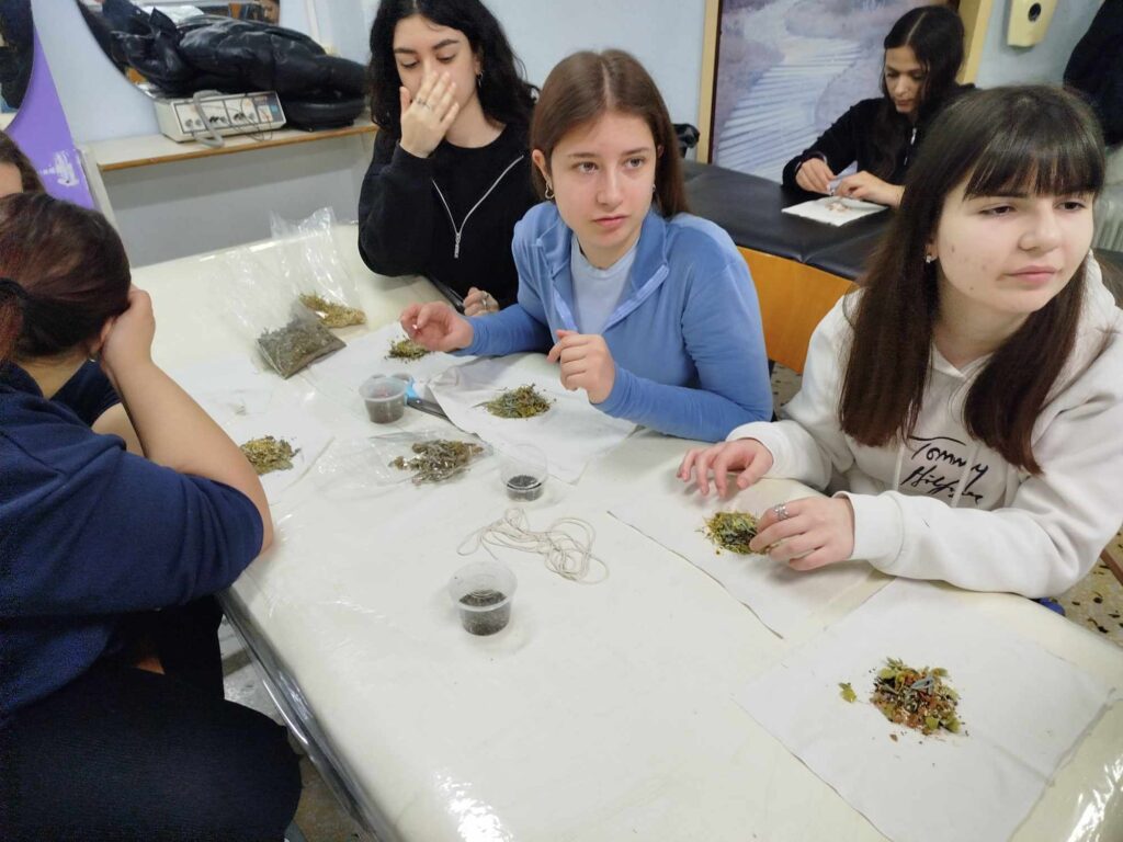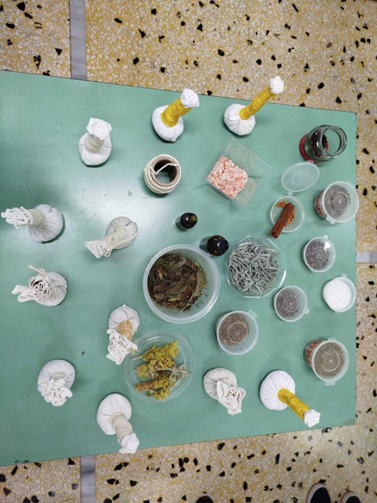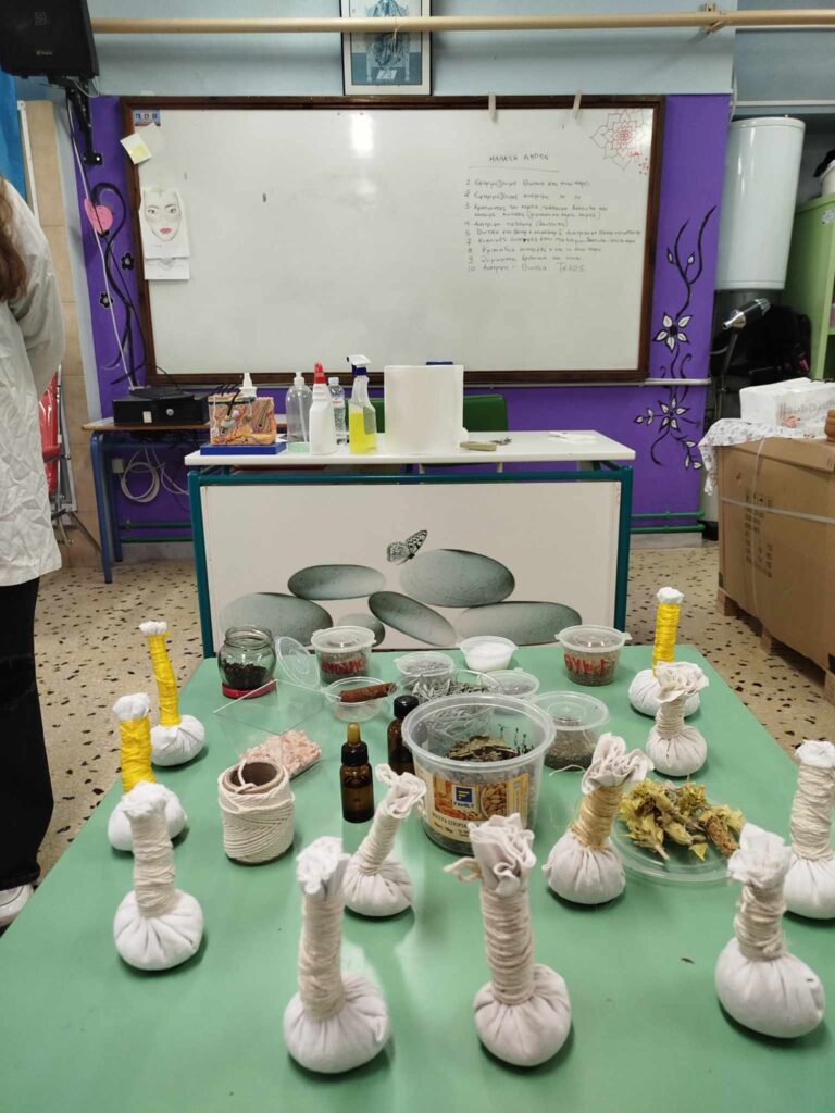 Ακολούθησε η κατασκευή προσωπικών πουγκιών από τις ίδιες τις μαθήτριες, επιλέγοντας τους κατάλληλους συνδυασμούς βοτάνων.