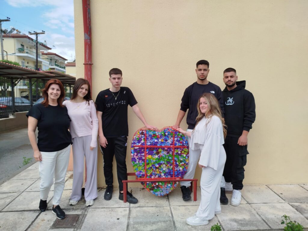 Ακριβώς ένα χρόνο πριν, το σχολείο μας, σε συνεργασία μεταξύ των ειδικοτήτων της Αισθητικής και της Μηχανολογίας, κατασκεύασαν το δικό τους ¨Κάδο Καρδιά¨ για την συγκέντρωση των πλαστικών καπακιών. Στόχος, ήταν η διάδοση της ιδέας της οικολογικής συνείδησης, η ευαισθητοποίηση των μαθητών και η συγκέντρωση οικονομικών πόρων για την αγορά αναπηρικών αμαξιδίων σε άτομα που το έχουν ανάγκη. Ένα χρόνο μετά, η δραστηριότητα συλλογής ανακυκλώσιμου υλικού απέδωσε το κοινωνικό όφελος που όλοι επιθυμούσαμε. Συγκεντρώσαμε και παραδώσαμε στον Σύλλογο Καρκινοπαθών Έδεσσας τα πρώτα καπάκια, ελπίζοντας και ευχόμενοι η πρωτοβουλία αυτή να βελτιώσει την καθημερινότητα και την ποιότητα ζωής κάποιου συνανθρώπου μας. Το 1ο ΕΠΑΛ/ΕΚ ΈΔΕΣΣΑΣ, συνεχίζει, θέτοντας καινούργιους στόχους και παροτρύνοντας όλους σας για ενεργή συμμετοχή.